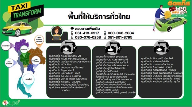 ผู้สนใจเข้าร่วมโครงการสามารถใช้สิทธิ์ได้เมื่อต้องการเปลี่ยนระบบเชื้อเพลิงรถยนต์มาใช้ LPG ที่ศูนย์บริการ 38 แห่ง ทั่วประเทศ เช่น ศูนย์ติดตั้งเวอร์ซุส ศูนย์ติดตั้งกรีนทู ฯลฯ ซึ่งเป็นศูนย์บริการที่เข้าร่วมโครงการ PT LPG Auto & Taxi Transform ภายใต้แคมเปญของบริษัทฯ และสอบถามรายละเอียดเพิ่มเติมได้ทาง Facebook เพจ PT LPG หรือโทร. 061-418-6917 และ 080-076-0258