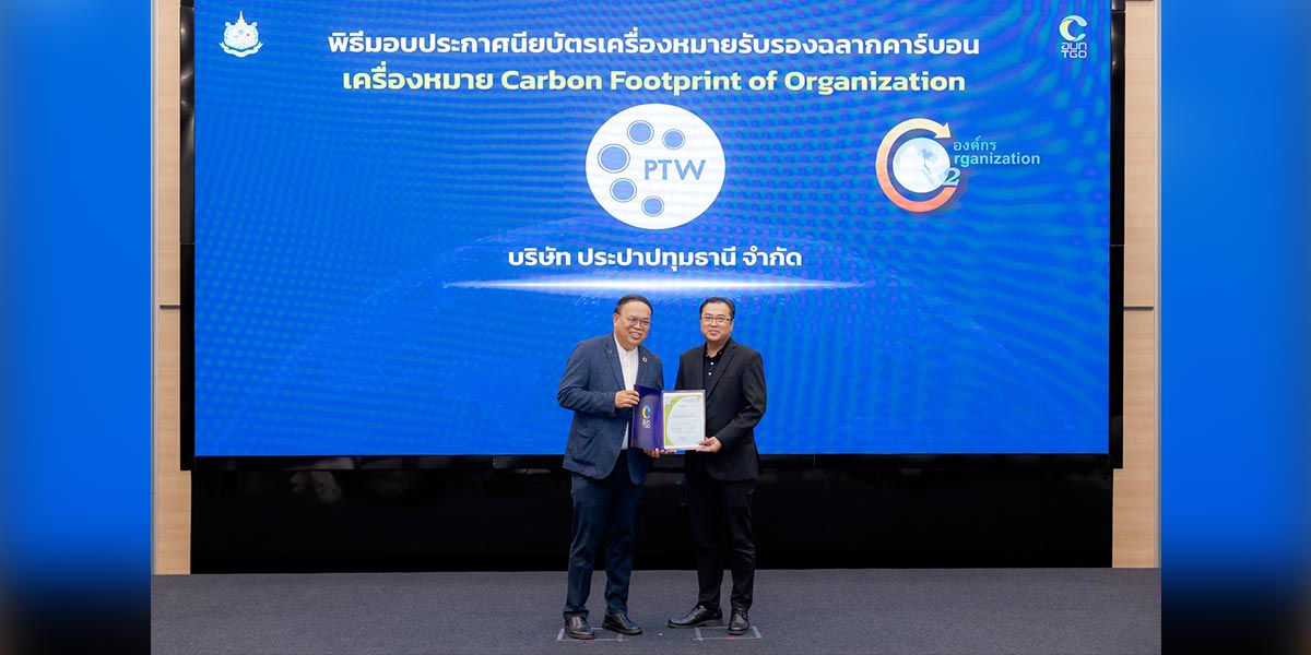 บริษัท ทีทีดับบลิว จำกัด (มหาชน) หรือ TTW และ บริษัท ประปาปทุมธานี จำกัด หรือ PTW ได้รับประกาศนียบัตรการรับรองคาร์บอนฟุตพริ้นท์ขององค์กร (Carbon Footprint for Organization: CFO) โดยองค์การบริหารจัดการก๊าซเรือนกระจก (องค์การมหาชน) ประจำปี 2569 โดยนางสาววลัยณัฐ ตรีวิศวเวทย์ กรรมการผู้จัดการ TTW รับมอบประกาศนียบัตรเครื่องหมายคาร์บอนฟุตพริ้นท์ขององค์กร (Carbon Footprint for Organization: CFO) จาก ดร.วิจารย์ สิมาฉายา ประธานกรรมการองค์การบริหารจัดการก๊าซเรือนกระจก