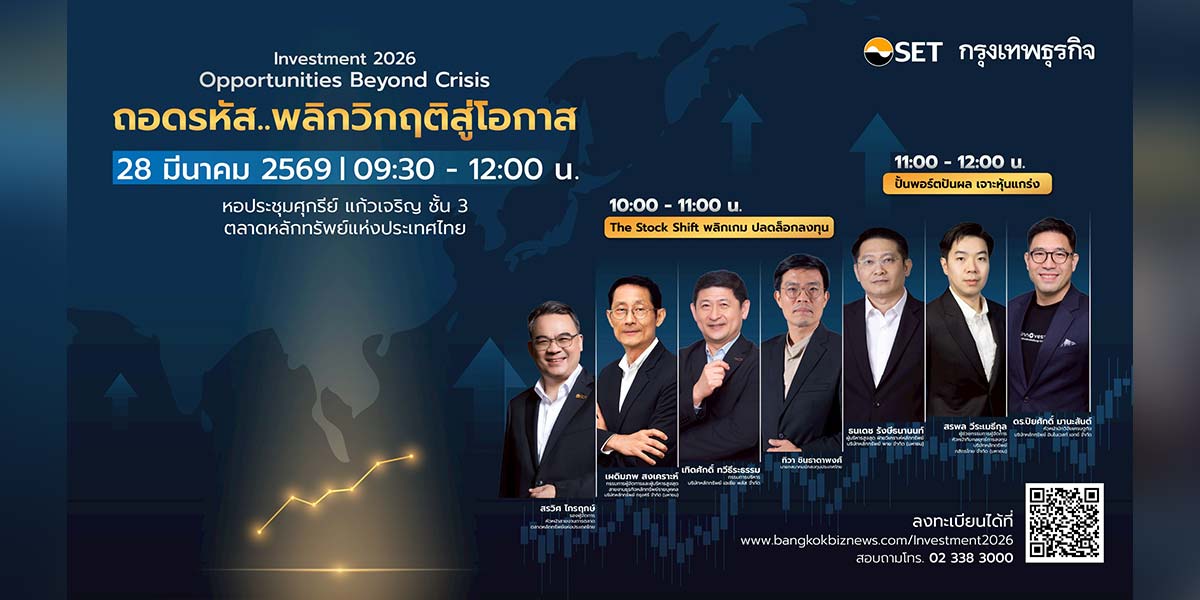 “กรุงเทพธุรกิจ” จัดสัมมนา “Investment 2026” เจาะลึกหุ้นปันผล-รับมือเทรนด์โลก 28 มี.ค.69