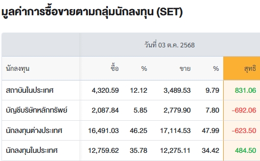 สรุปการซื้อ-ขายรายกลุ่ม ประจำวันที่ 3 ต.ค. 68