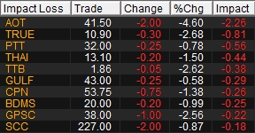 10 หุ้นกดดัชนีเช้านี้