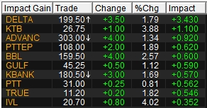 นายณัฐพล คำถาเครือ ผู้ช่วยกรรมการผู้จัดการ ฝ่ายวิเคราะห์หลักทรัพย์ บล.หยวนต้า (ประเทศไทย) กล่าวว่า ตลาดหุ้นไทยวันนี้ปรับตัวขึ้นได้ดี รับแรงหนุนจากกลุ่มแบงก์ผลประกอบการดีกว่าคาด และกลุ่มพลังงานฟื้นตัวจากราคาน้ำมันเด้งขึ้นหลังยกเลิกการประชุมสุดยอดระหว่างประธานาธิบดีโดนัลด์ ทรัมป์ ผู้นำสหรัฐฯ กับประธานาธิบดีวลาดิเมียร์ ปูติน ผู้นำรัสเซีย อีกทั้งอุตุนิยมวิทยาของสหรัฐระบุว่าอากาศจะหนาวขึ้นเป็นตัวเร่งดีมานด์น้ำมัน ประกอบกับ เกาหลีเหนือยิงขีปนาวุธไปยังน่านน้ำญี่ปุ่นหนุนราคาน้ำมันปรับขึ้นด้วย