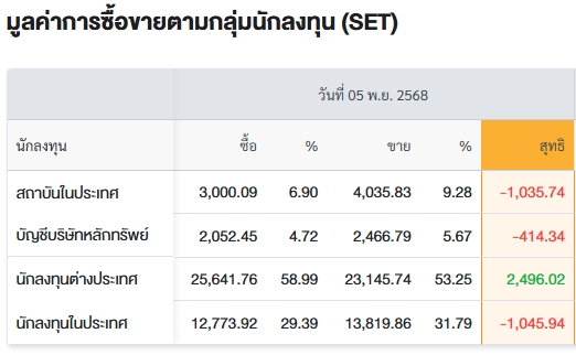 สรุปการซื้อขายรายกลุ่ม ประจำวันที่ 5 พ.ย.68