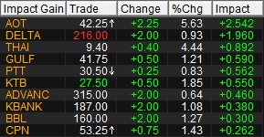 10 หุ้นดันดัชนีวันนี้