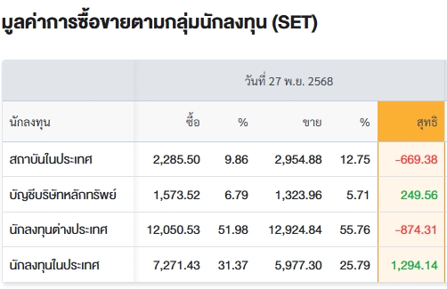 สรุปการซื้อ-ขายรายกลุ่ม ประจำวันที่ 27 พ.ย.68