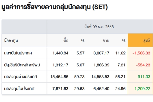 สรุปการซื้อ-ขายรายกลุ่ม ประจำวันที่ 9 ธ.ค.68
