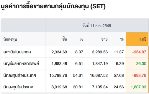 สรุปการซื้อ-ขายรายกลุ่ม ประจำวันที่ 11 ธ.ค.68