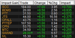 ส่วนหลักทรัพย์ที่มีมูลค่าการซื้อขายสูงสุด 5 หลักทรัพย์