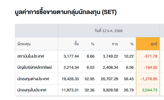 สรุปการซื้อ-ขายรายกลุ่ม ประจำวันที่ 12 ธ.ค.68