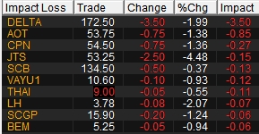 10 หุ้นกดดัชนีเช้านี้