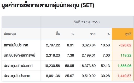 สรุปการซื้อ-ขายรายกลุ่ม ประจำวันที่ 23 ธ.ค.68