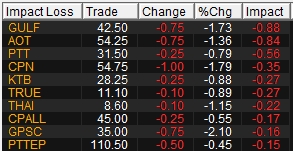 10 หุ้นกดดัชนีเช้านี้