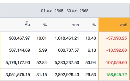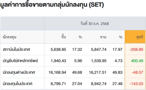 สรุปการซื้อขายรายกลุ่ม ประจำวันที่ 30 ธ.ค.68