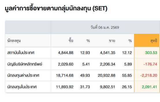 สรุปการซื้อ-ขายรายกลุ่ม ประจำวันที่ 6 ม.ค.69