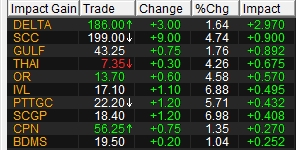 นายณรงค์เดช จันทรไพศาล ผู้อำนวยการฝ่ายวิเคราะห์หลักทรัพย์ บล.ไอร่า กล่าวว่าตลาดหุ้นไทยวันนี้ดัชนีถูกพยุงจากแรงซื้อกลับหุ้น DELTA สอดคล้องกับตลาดต่างประเทศที่กลุ่มเซมิคอนดักเตอร์ปรับตัวขึ้นมา นอกจากนี้ ยังได้แรงหนุนจากกลุ่มปิโตรเคมีที่ปรับตัวขึ้นอย่างโดดเด่น สลับแรงขายกลุ่มพลังงาน และกลุ่มแบงก์ที่ราคาขึ้นมาระดับหนึ่งแล้ว