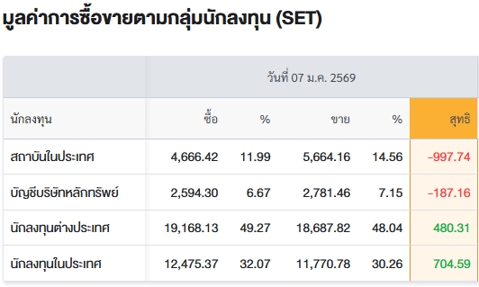 สรุปการซื้อ-ขายรายกลุ่ม ประจำวันที่ 7 ม.ค.69
