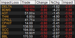 แรงขายหุ้นโรงพยาบาล–ค้าปลีก-เดลต้า กด SET ปิดร่วง 12 จุด