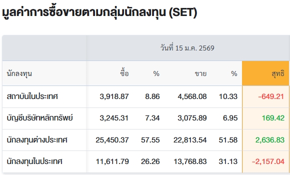 สรุปการซื้อ-ขายรายกลุ่ม ประจำวันที่ 15 ม.ค.69
