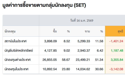 สรุปการซื้อ-ขายรายกลุ่ม ประจำวันที่ 16 ม.ค.69