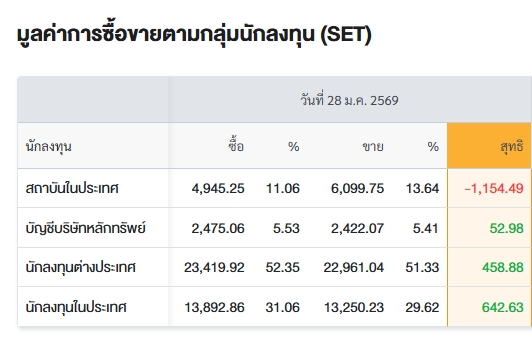 สรุปการซื้อ-ขายรายกลุ่ม ประจำวันที่ 28 ม.ค.69