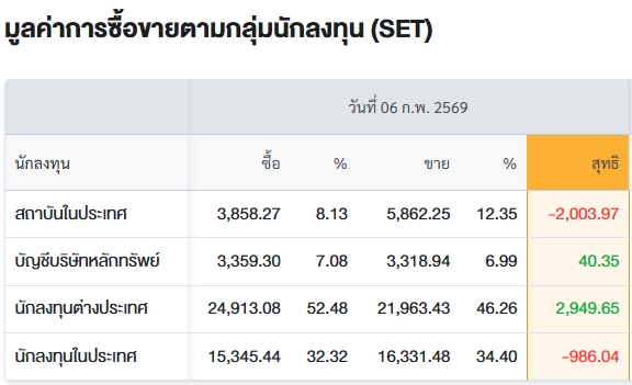 สรุปการซื้อ-ขายรายกลุ่ม ประจำวันที่ 6 ก.พ.69