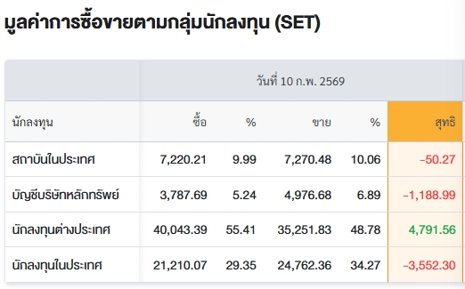 สรุปการซื้อ-ขายรายกลุ่ม ประจำวันที่ 10 ก.พ.69