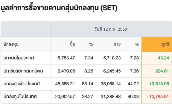 สรุปการซื้อ-ขายรายกลุ่ม ประจำวันที่ 12 ก.พ.69