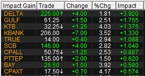 การซื้อขายหุ้นวันนี้เคลื่อนไหวแดนบวกเป็นส่วนใหญ่ โดยทำจุดสูงสุด 1,460.57 จุด และจุดสูงสุด 1,433.91 จุด