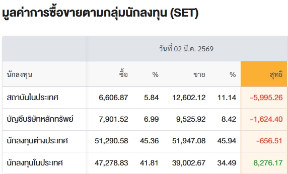 สรุปการซื้อ-ขายรายกลุ่ม ประจำวันที่ 2 มี.ค.69