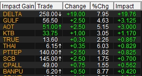 10 หุ้นดันดัชนีวันนี้