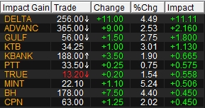 ทั้งนี้ ตลาดหุ้นไทยได้รับแรงหนุนสำคัญจากการปรับตัวขึ้นของหุ้น DELTA รวมถึงแรงซื้อกลับ (Cover Short) ในกลุ่มหุ้นที่เผชิญแรงขายมากเกินไปก่อนหน้านี้ โดยเฉพาะกลุ่มอุตสาหกรรมที่ประเมินว่าอาจไม่ได้รับผลกระทบจากภาวะสงครามรุนแรงอย่างที่ตลาดเคยมีความกังวล