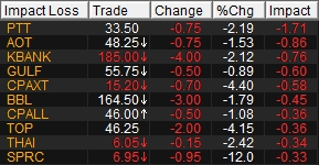 10 หุ้นกดดัชนีวันนี้