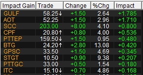นายชัยพร น้อมพิทักษ์เจริญ กรรมการผู้จัดการ กิจการค้าหลักทรัพย์ บล.บัวหลวง กล่าวว่า ตลาดหุ้นไทยวันนี้ปรับตัวขึ้นเล็กน้อย สวนทางตลาดหุ้นอื่นในภูมิภาคเอเชียที่ส่วนใหญ่ปรับลง แรงหนุนสำคัญมาจากหุ้นขนาดใหญ่ กลุ่มน้ำมัน โรงกลั่น และปิโตรเคมี ที่ปรับตัวขึ้นรับอานิสงส์ราคาตลาดโลกยังทรงตัวในระดับสูง