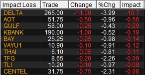 DELTA มูลค่าการซื้อขาย 2,743.71 ล้านบาท ปิดที่ 265.00 บาท ลดลง 11.00 บาท