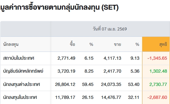 สรุปการซื้อ-ขายรายกลุ่ม ประจำวันที่ 7 เม.ย.69