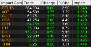 อย่างไรก็ตาม การปรับตัวขึ้นของตลาดหุ้นไทยในวันนี้ ถือว่าปรับตัวเพิ่มขึ้นน้อยกว่าตลาดหุ้นอื่นในภูมิภาค สาเหตุหลักมาจากในช่วงที่ผ่านมาตลาดหุ้นไทยปรับตัวลดลงในสัดส่วนที่น้อยกว่า โดยปัจจัยหนุนตลาดในวันนี้มาจากแรงซื้อในกลุ่มหุ้นที่ได้รับอานิสงส์จากการยุติข้อพิพาทในตะวันออกกลาง ขณะที่หุ้นกลุ่มพลังงานซึ่งปรับตัวขึ้นแรงในช่วงก่อนหน้านี้ เริ่มมีจังหวะของการพักตัวเพื่อลดความร้อนแรงลง