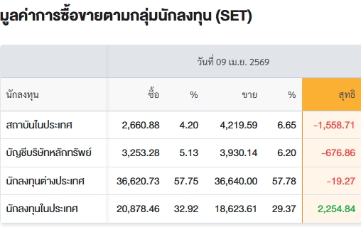 สรุปการซื้อ-ขายรายกลุ่ม ประจำวันที่ 9 เม.ย.69