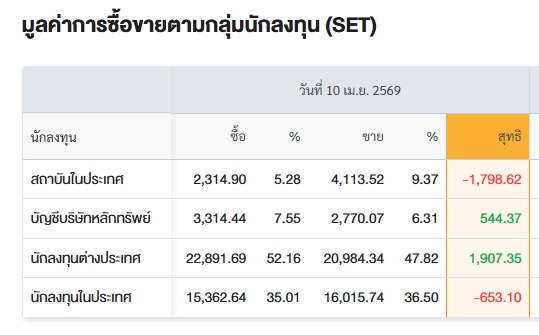 สรุปการซื้อ-ขายรายกลุ่ม ประจำวันที่ 10 เม.ย.69