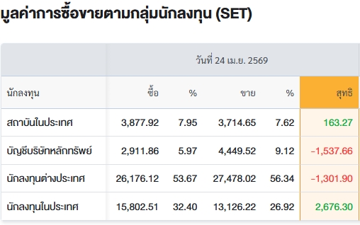 สรุปการซื้อ-ขายรายกลุ่ม ประจำวันที่ 24 เม.ย.69