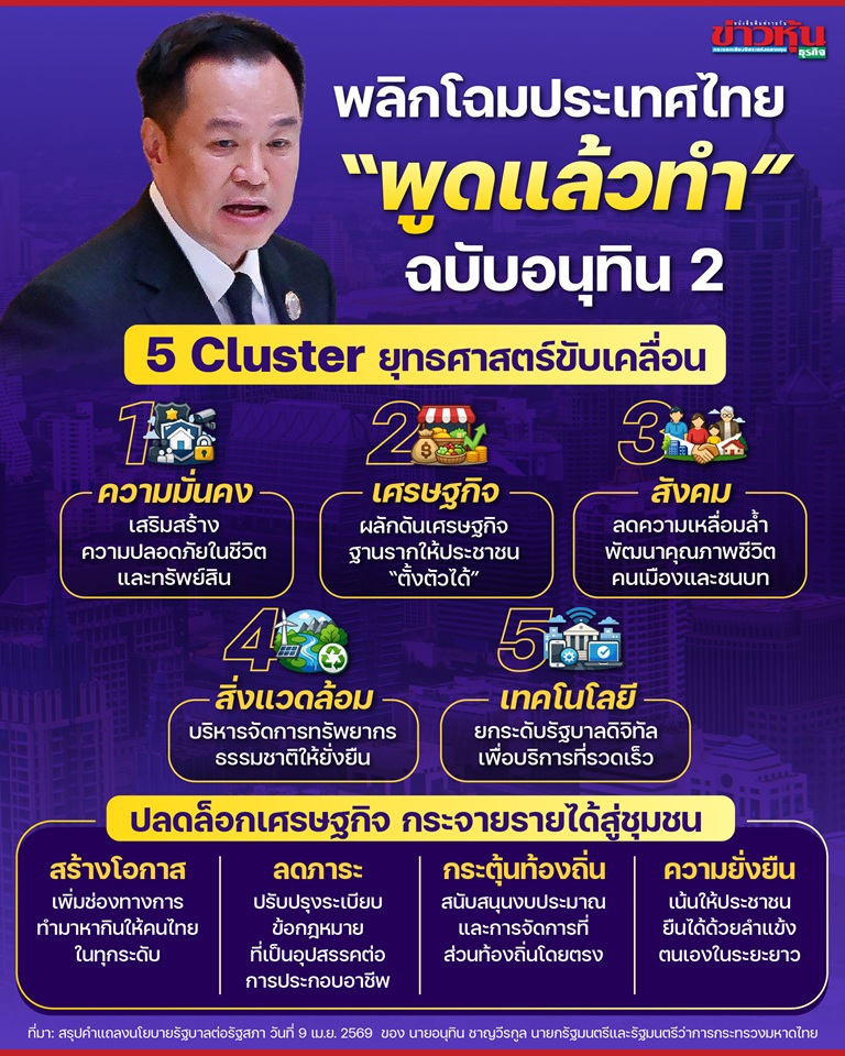 เปิดนโยบาย “พูดแล้วทำ” ฉบับรัฐบาล “อนุทิน 2”