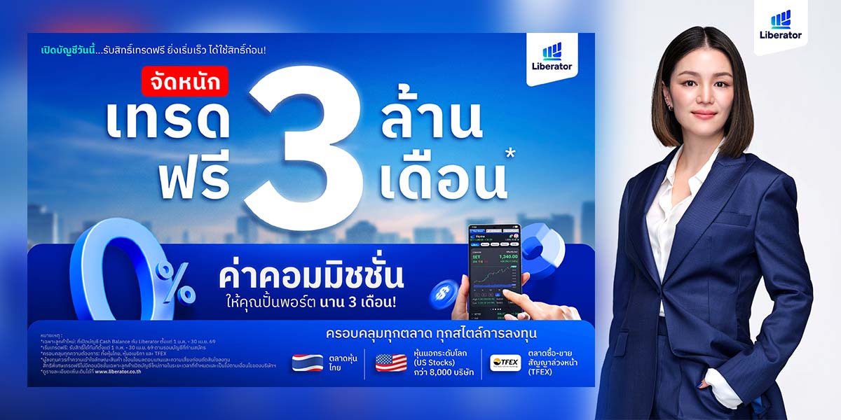 บล.ลิเบอเรเตอร์ เปิดตัวแคมเปญ “เทรด 3 ล้าน ฟรี 3 เดือน” มอบสิทธิเทรดฟรีค่าคอมมิชชั่น 0% สำหรับลูกค้าใหม่บัญชี Cash Balance ระหว่าง 1 ม.ค.–30 เม.ย. 2569 ครอบคลุมหุ้นไทย หุ้นสหรัฐฯ แ…